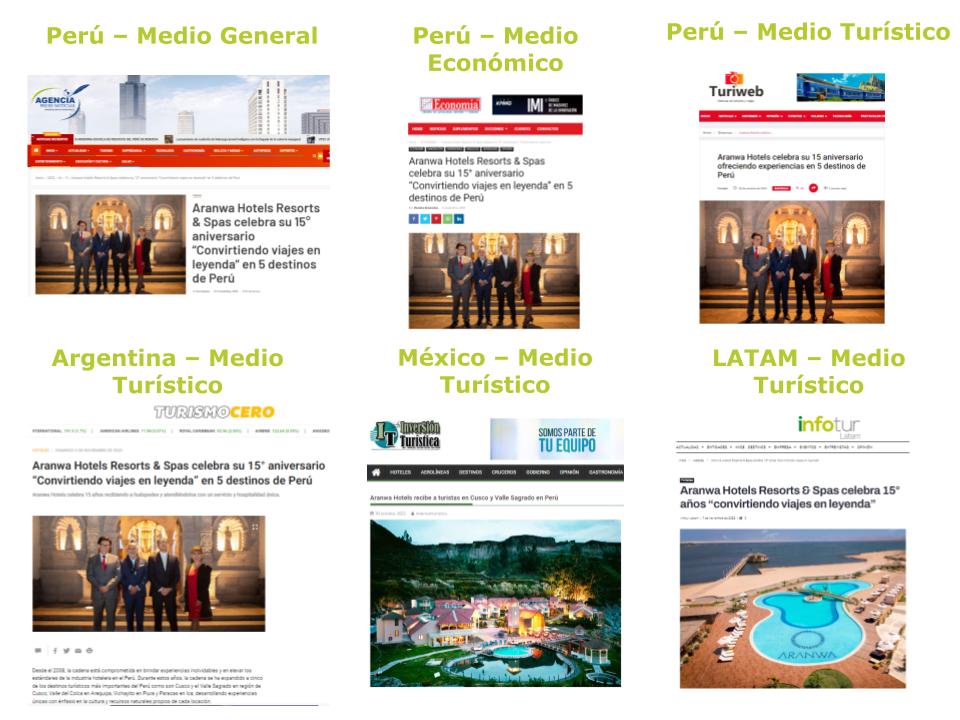 - Distribución de 1 nota de prensa sobre Aranwa Hotels, Resorts